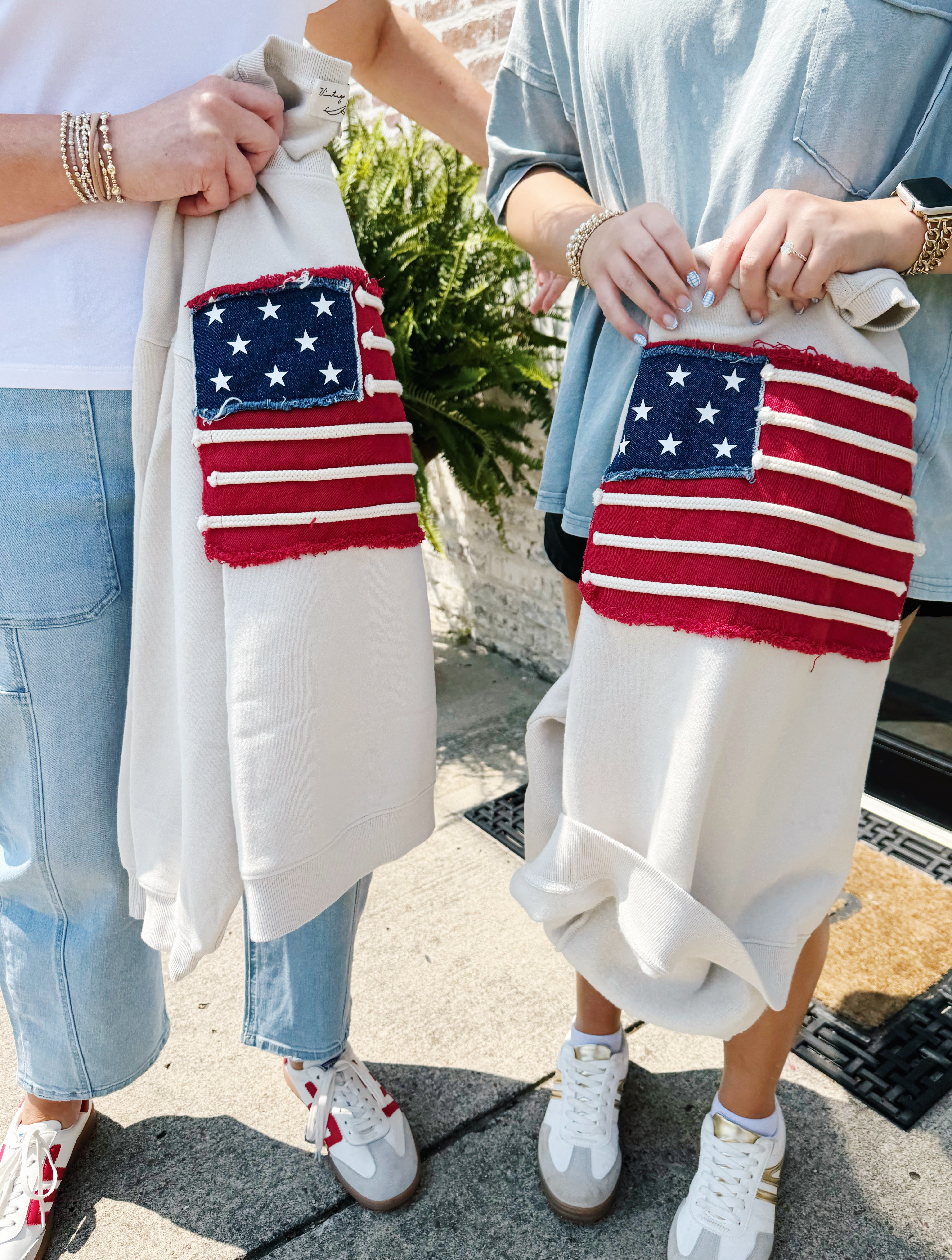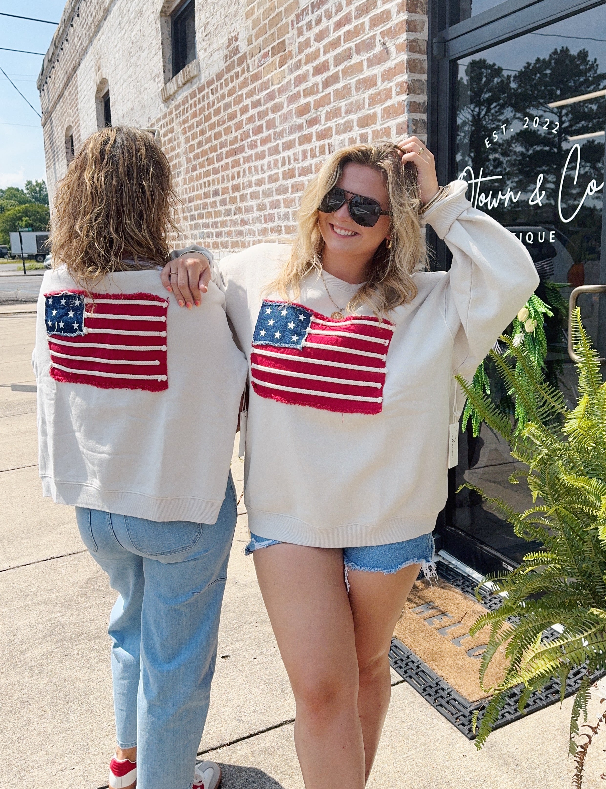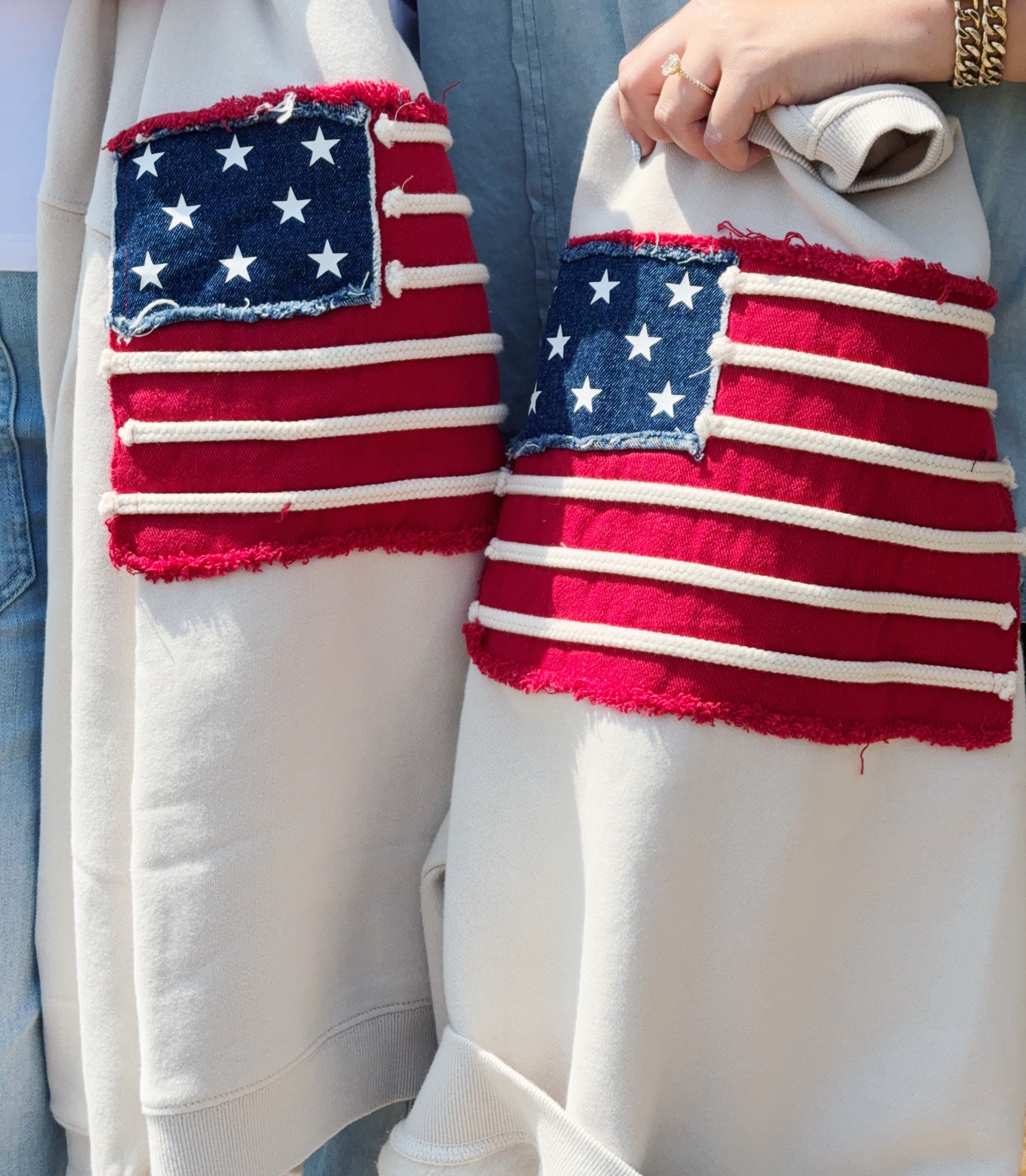 Stay cozy and show your pride with the American Flag Crewneck! Crafted from soft fleece, this crewneck wraps you in warmth while keeping your style on point. Perfect for everyday adventures, its comfy fit makes it your new go-to for casual fun and patriotic flair.