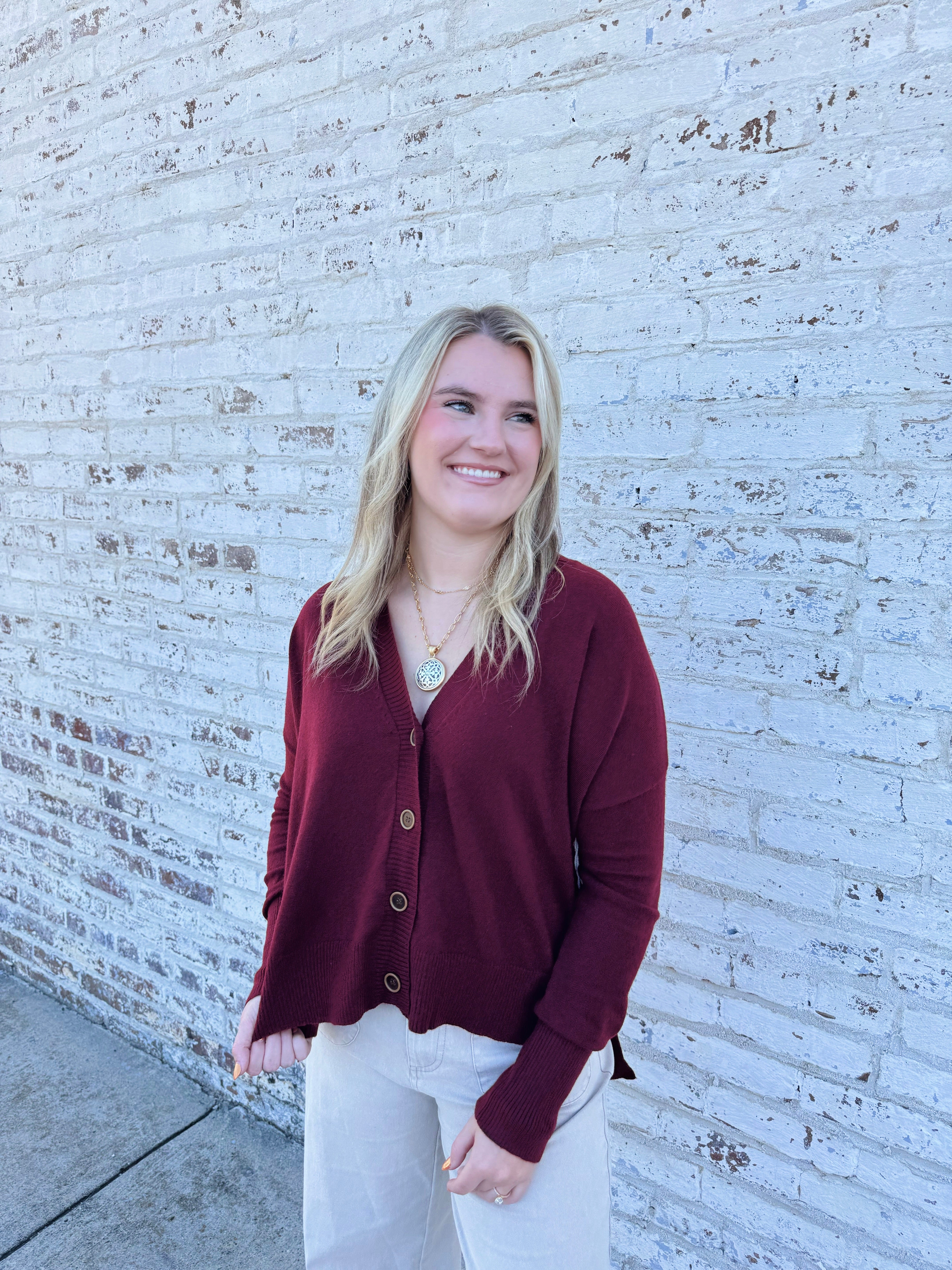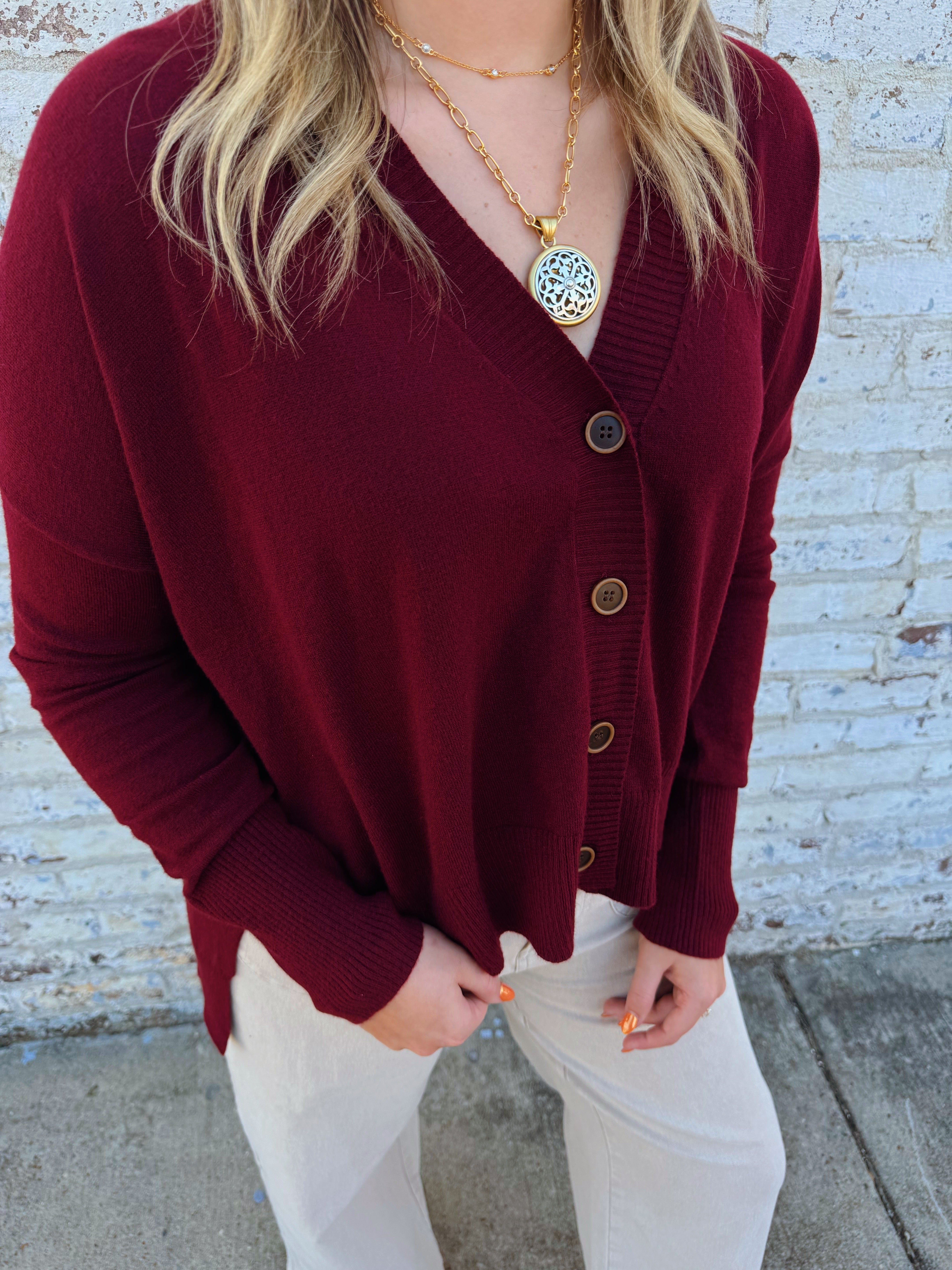 Burgundy Button Up Sweater