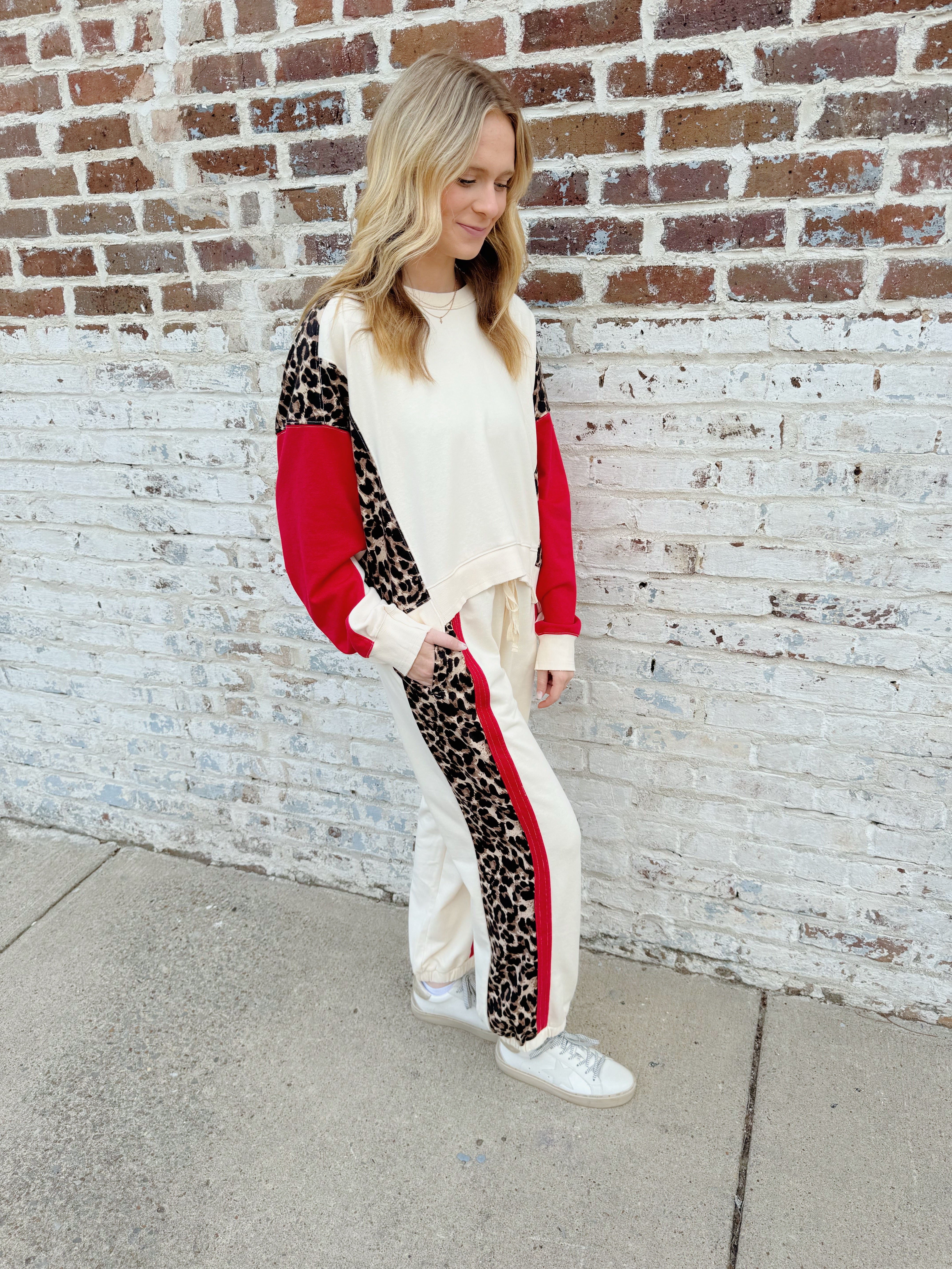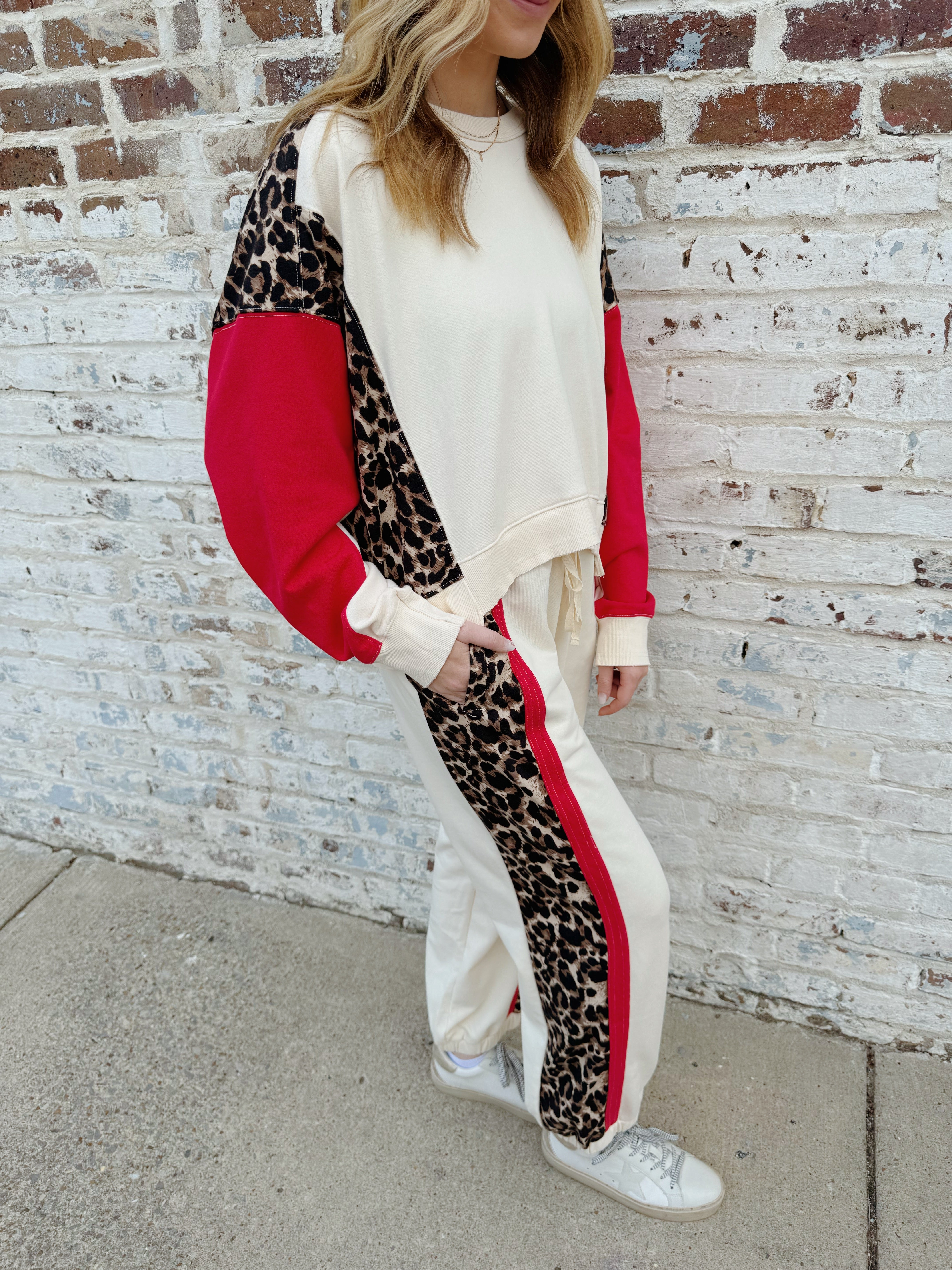Leopard Color block dropped shoulder pullover