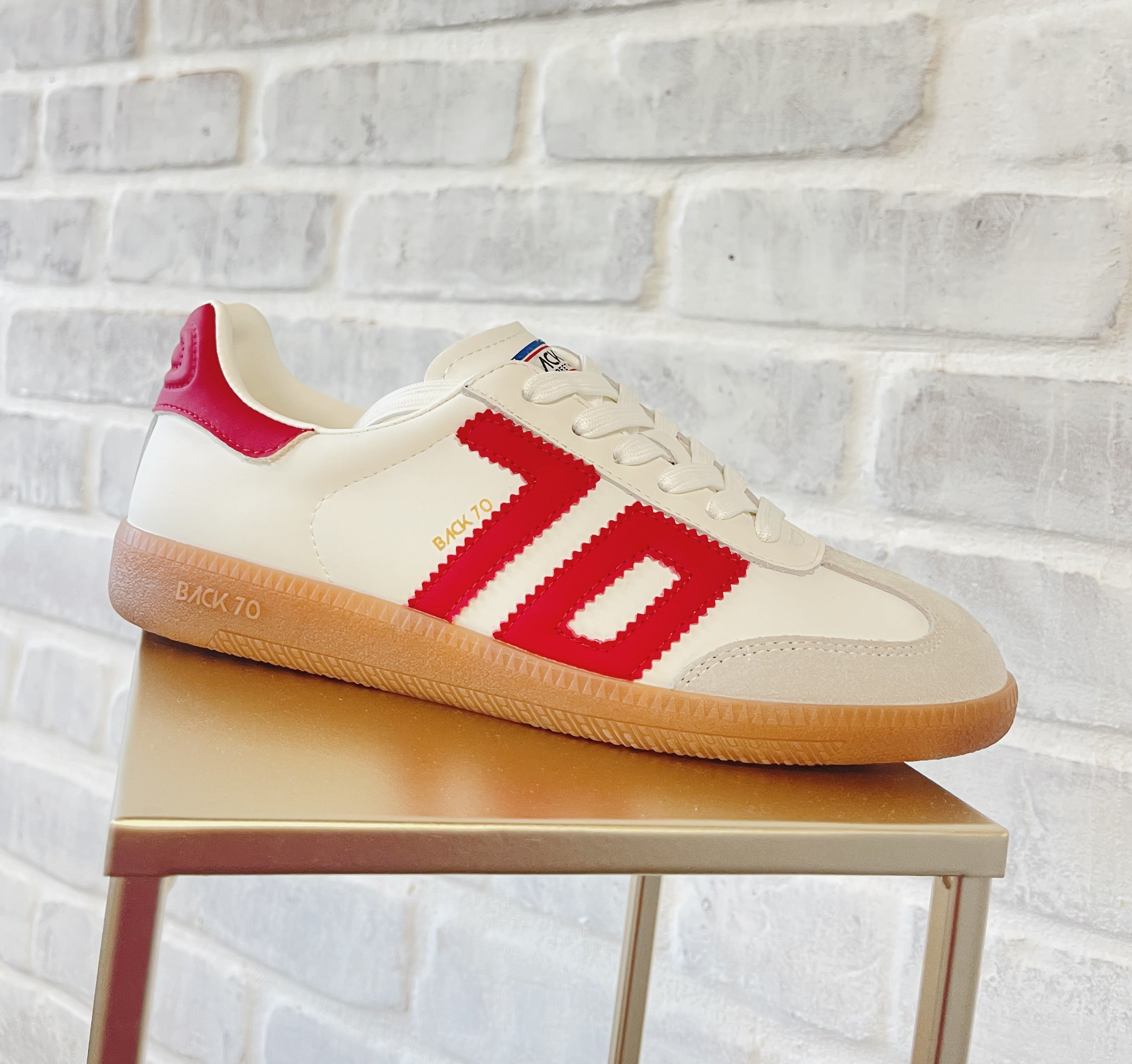 Step up your sneaker game with our Cloud Red Back 70 Sneakers, featuring a trendy and unique design that is sure to turn heads. The cloud red back adds a pop of color while the 70s style gives a nostalgic touch. Walk on clouds and stand out from the crowd with these must-have kicks.