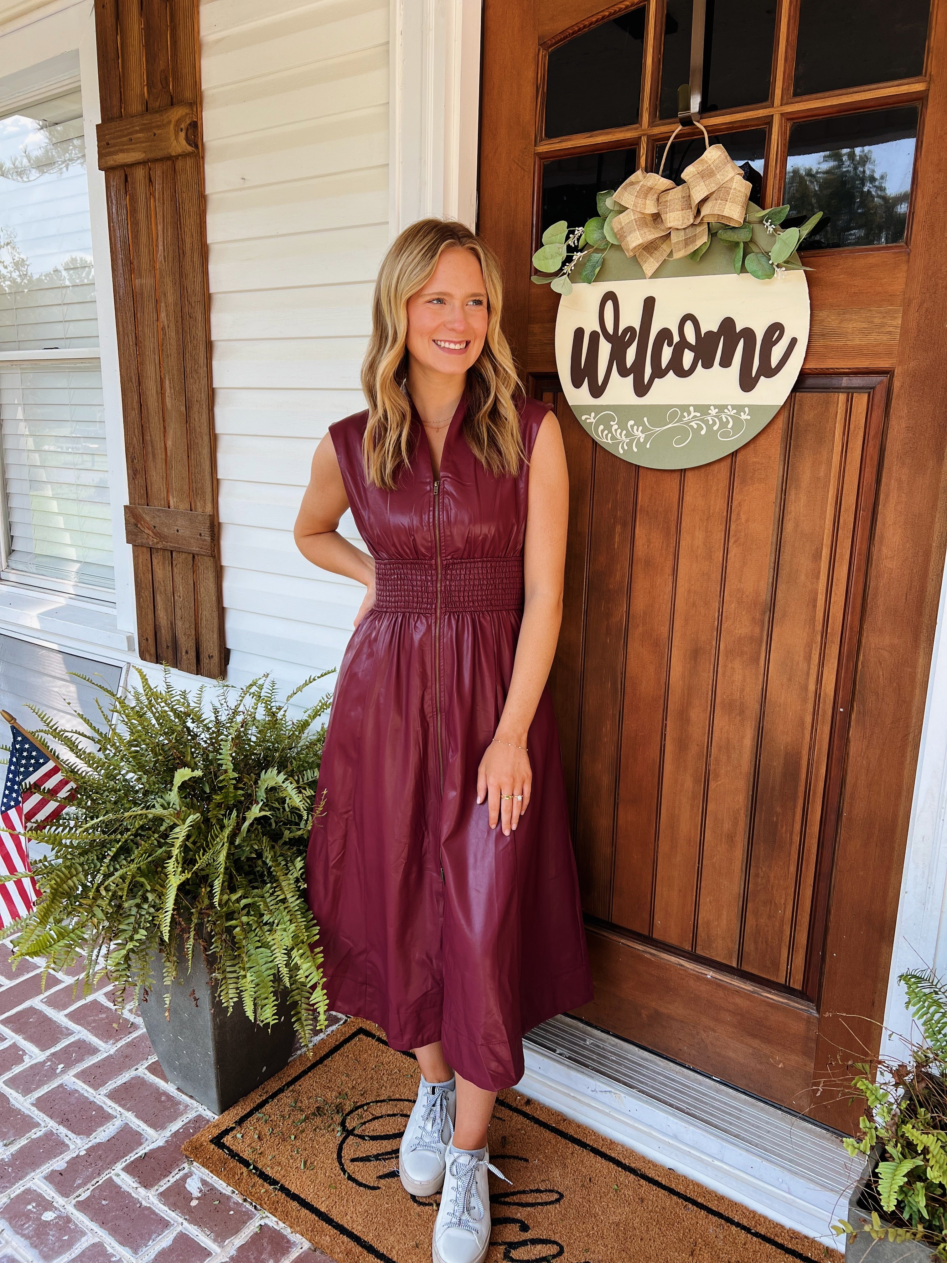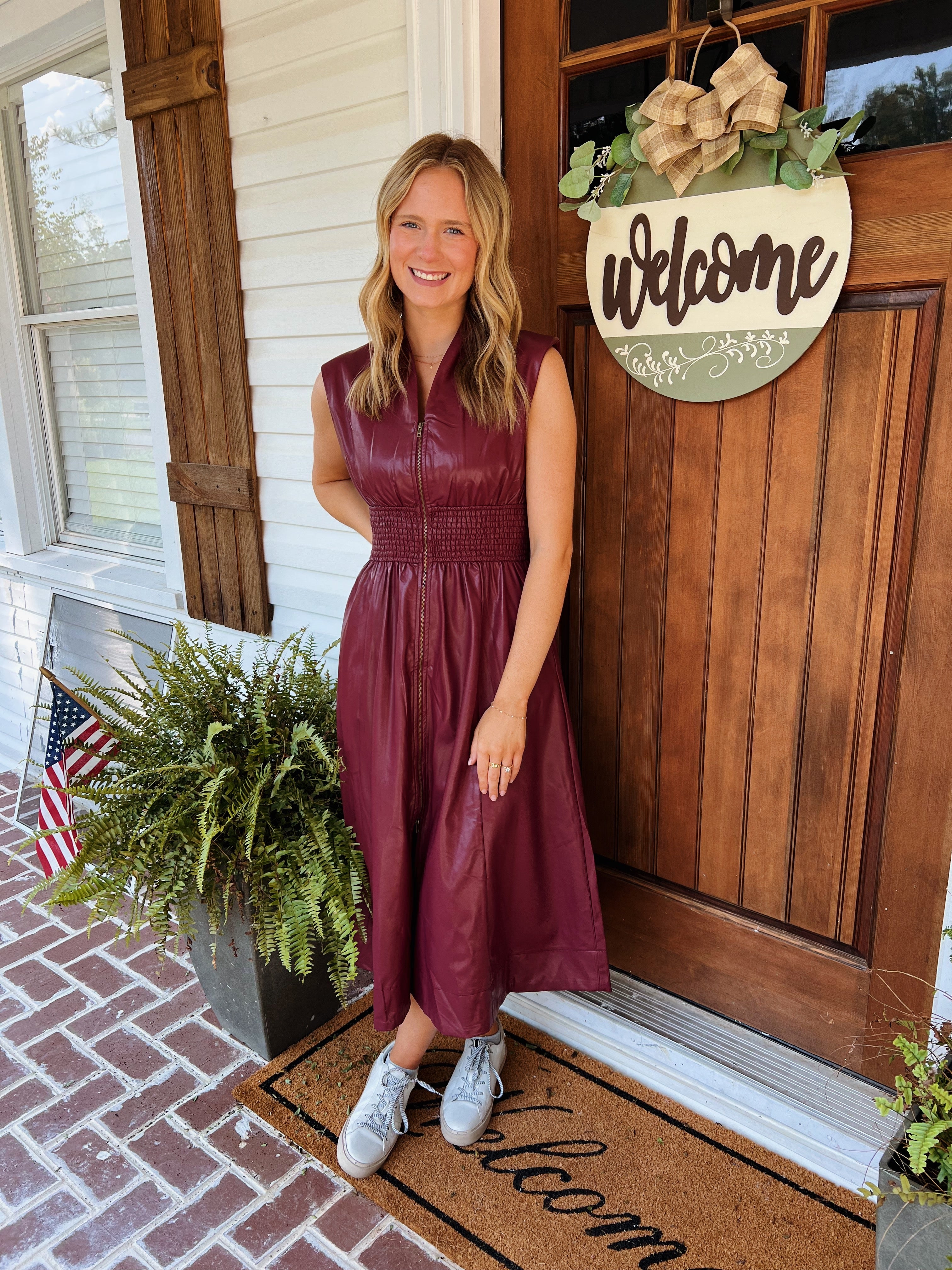 This crimson red leather dress is expertly crafted with a full-length front zipper, offering both bold style and practical functionality. It delivers a sleek, form-fitting silhouette that enhances confidence and presence. The front zipper allows for customizable wear, making it a versatile choice for sophisticated, fashion-forward occasions.