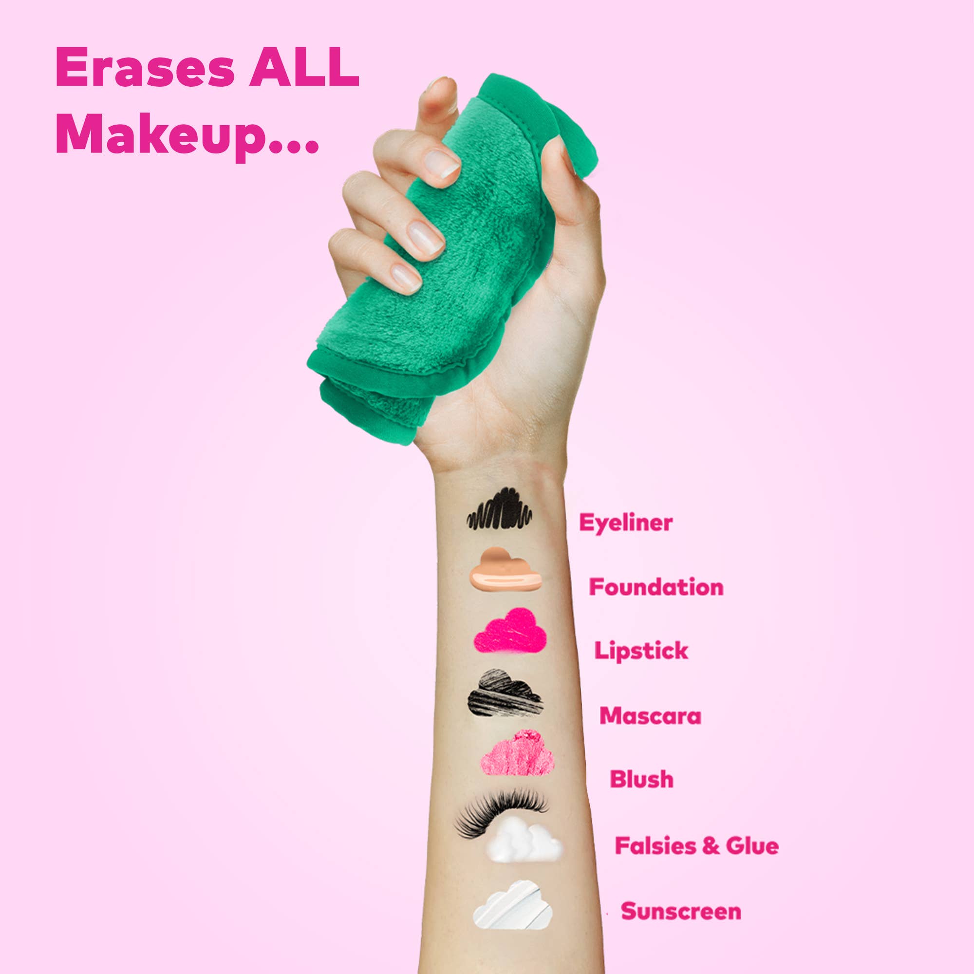 Remove makeup with JUST WATER™ including waterproof. Our patented, water-activated, cloud-soft fibers gently & easily remove all makeup & sunscreen from pores. 2 in 1 benefit: one side removes, one side exfoliates.