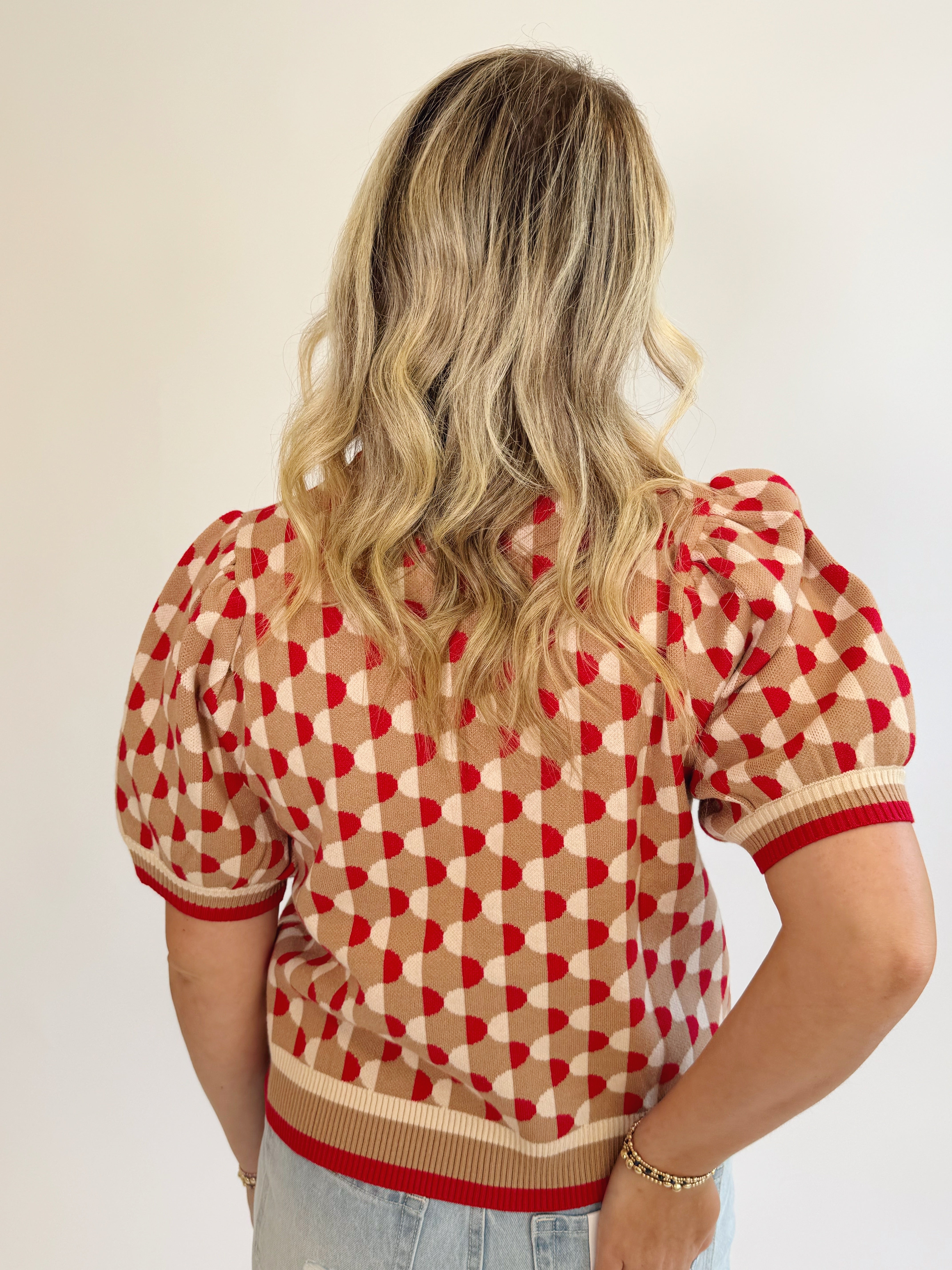 Step into retro vibes with this Groovy Red Sweater Top, featuring a fun tan, cream, and red pattern that adds a splash of personality to your look. Cozy and colorful, it’s perfect for turning heads and brightening up chilly days with playful style.