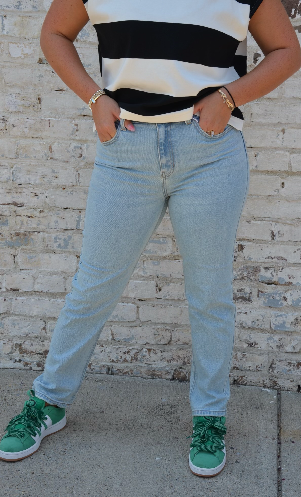 Elevate your style with our High Rise Slim Straight Jeans in Light Denim. These jeans not only provide a flattering high rise fit, but also feature a slim straight cut for a sleek look. Perfect for any occasion, these jeans will be your go-to for effortless style.