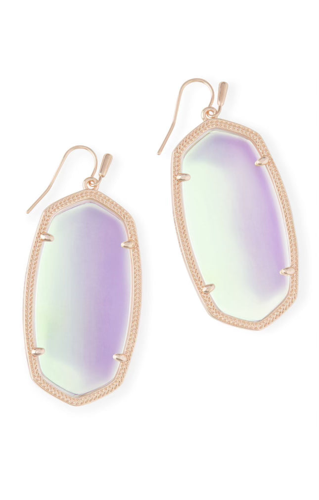 Introducing the Kendra Scott Danielle Earring! Made with stunning dichroic glass, these earrings are a one-of-a-kind statement piece. Elevate any outfit with their unique color-shifting properties. Perfect for adding a playful touch to your everyday look.