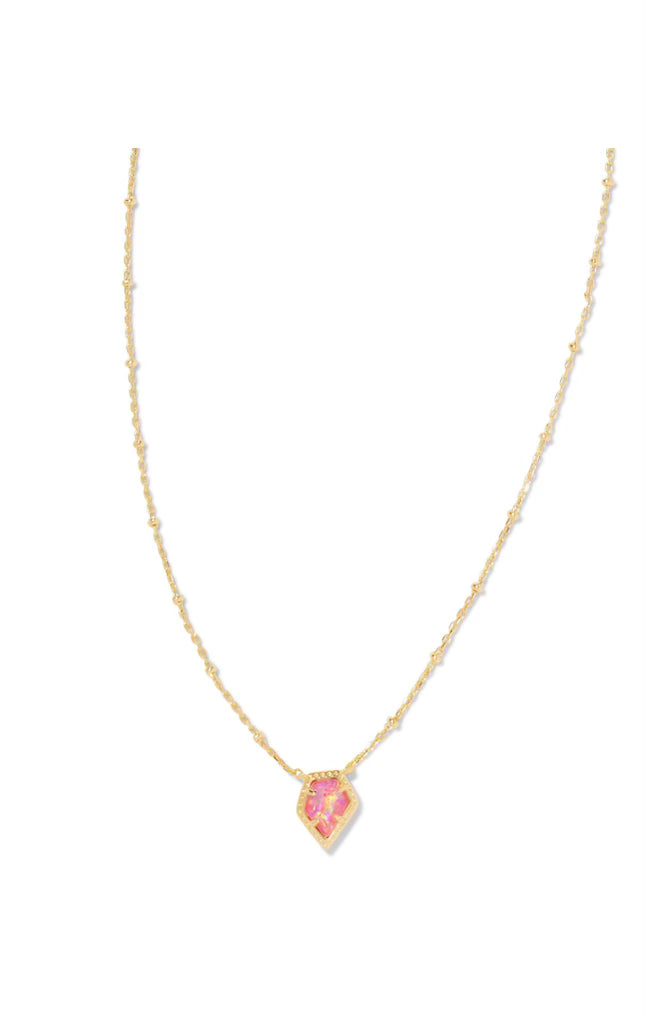Add a pop of Pink Opal to your outfit with the Kendra Scott Framed Tess Necklace. The subtle gold finish and rose pink opal stone add a touch of elegance to this statement piece. Perfect for any occasion!