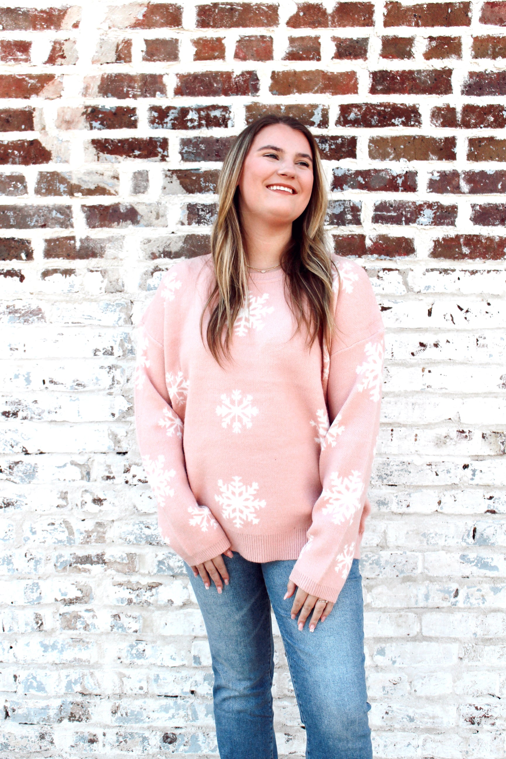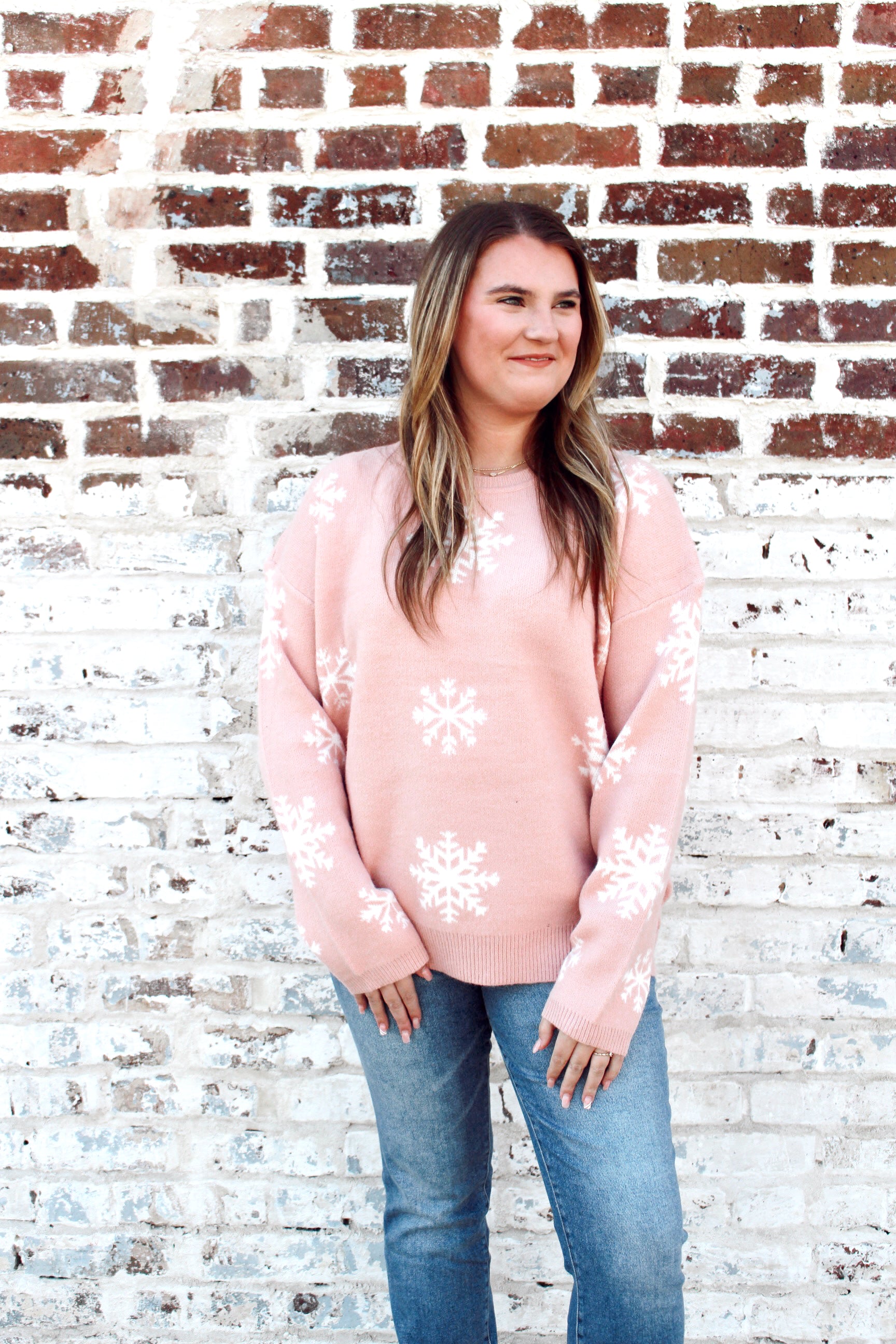 Wrap yourself in coziness like no other! This soft blush snowflake sweater is perfect for adding a bit of style and warmth to those chilly days. Get ready to rock the season with your unique and subtly fashionable statement!
