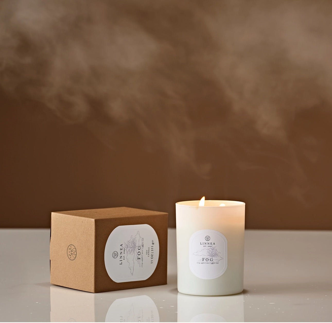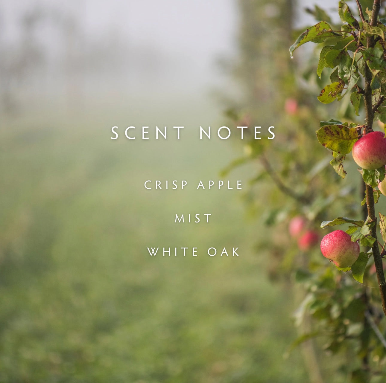 Step into the hush of an autumn morning. Fog evokes the gentle blur of mist, the snap of fallen leaves, and the crisp bite of orchard air. Housed in a light-diffusing alabaster vessel with a double cotton wick, each candle is hand-poured with clean soy wax for a beautifully even burn.
