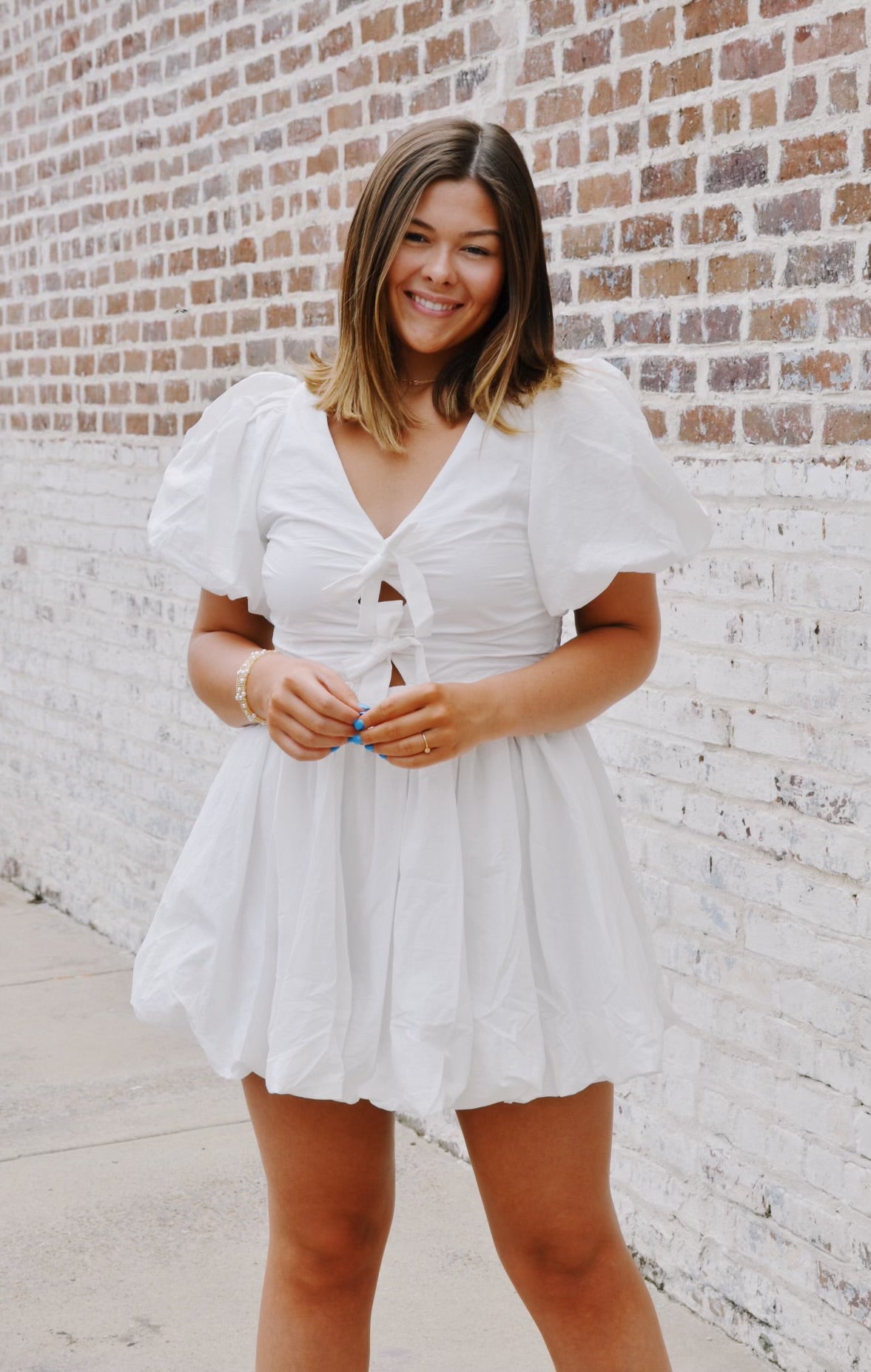 Get ready to turn heads in the Mabel Bow Dress. With puff sleeves, bow detailing, and a stretchy back, this dress is the perfect blend of cute and comfy. Perfect for any occasion, you'll feel stylish and comfortable all day long. Who says you can't have it all?!