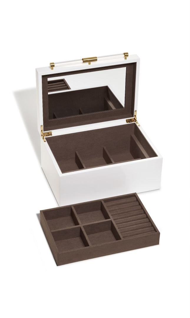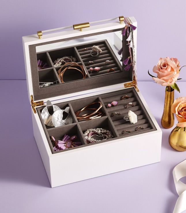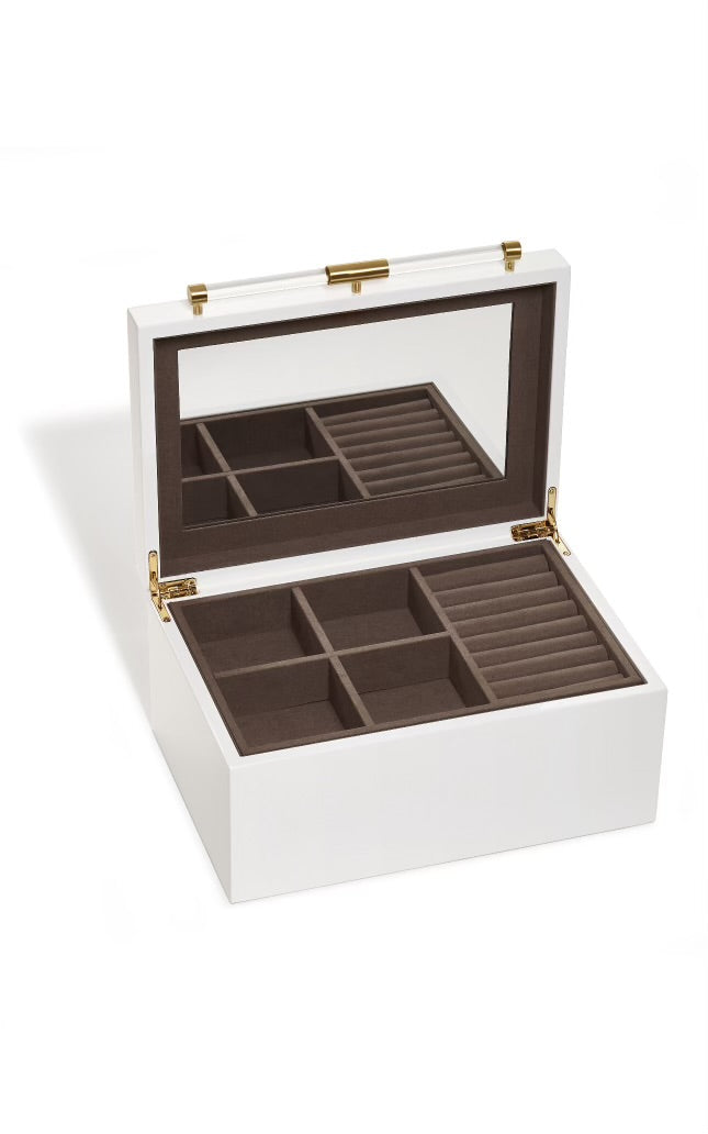 Store your treasures in style with the Medium Jewelry Box by Kendra Scott. This 11"x8.25"x5" box features a sleek white design and is the perfect size for storing all your favorite Kendra Scott jewelry pieces. Keep your accessories organized and show off your unique style with this must-have jewelry box. (Treasure not included!)