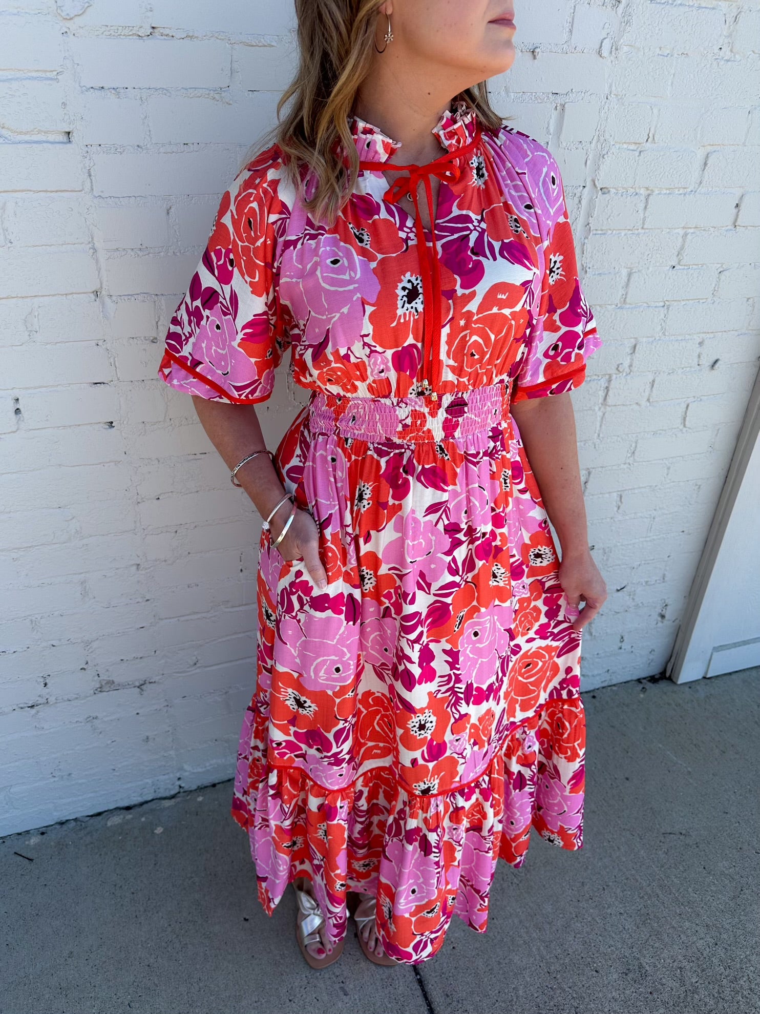 Take on the world in our vibrant Poppy Maxi Dress. With its playful pattern and flowy silhouette, this dress is perfect for any occasion. Stand out from the crowd with this quirky and fun addition to your wardrobe. (Warning: may cause fashion envy.)