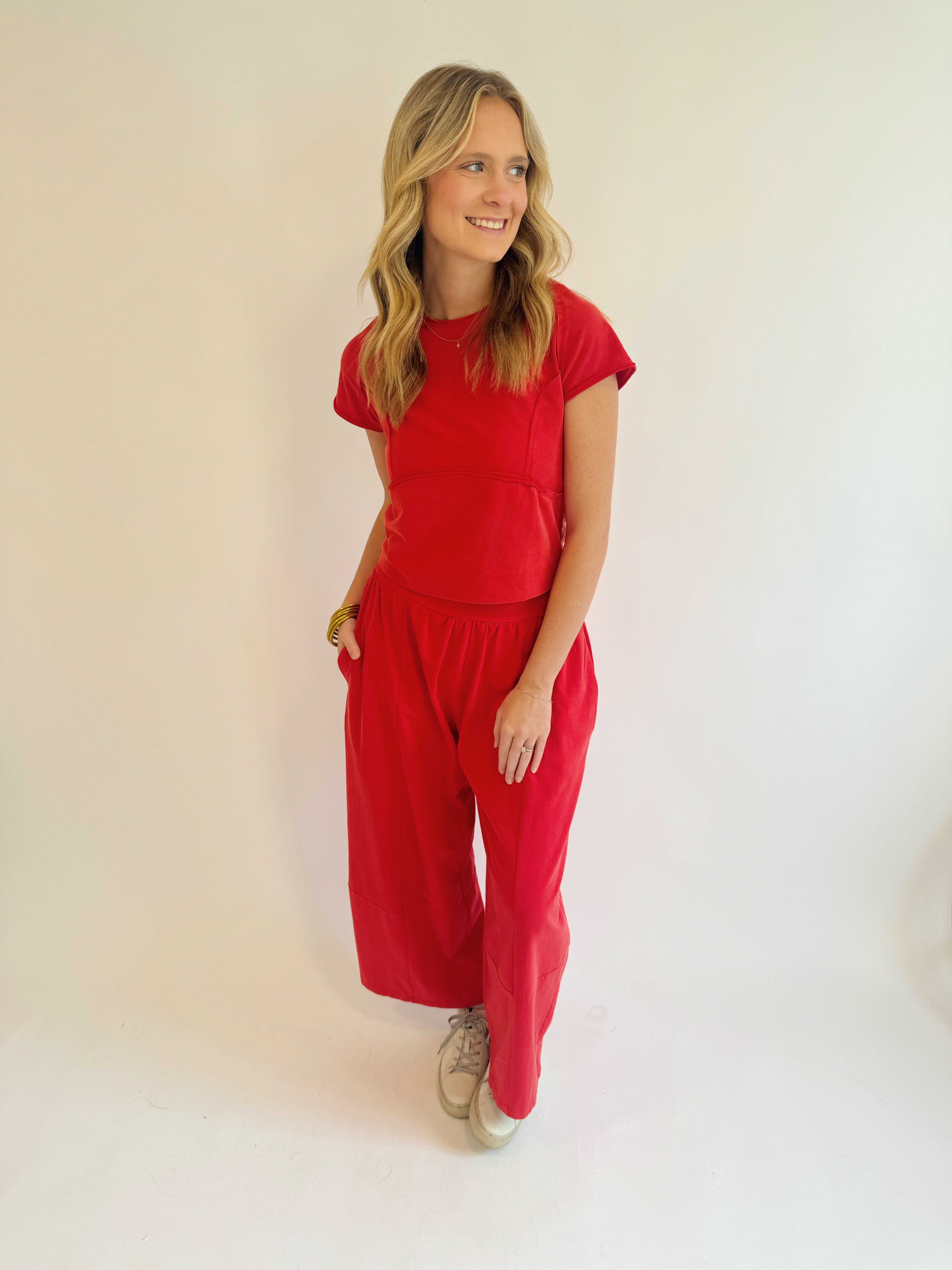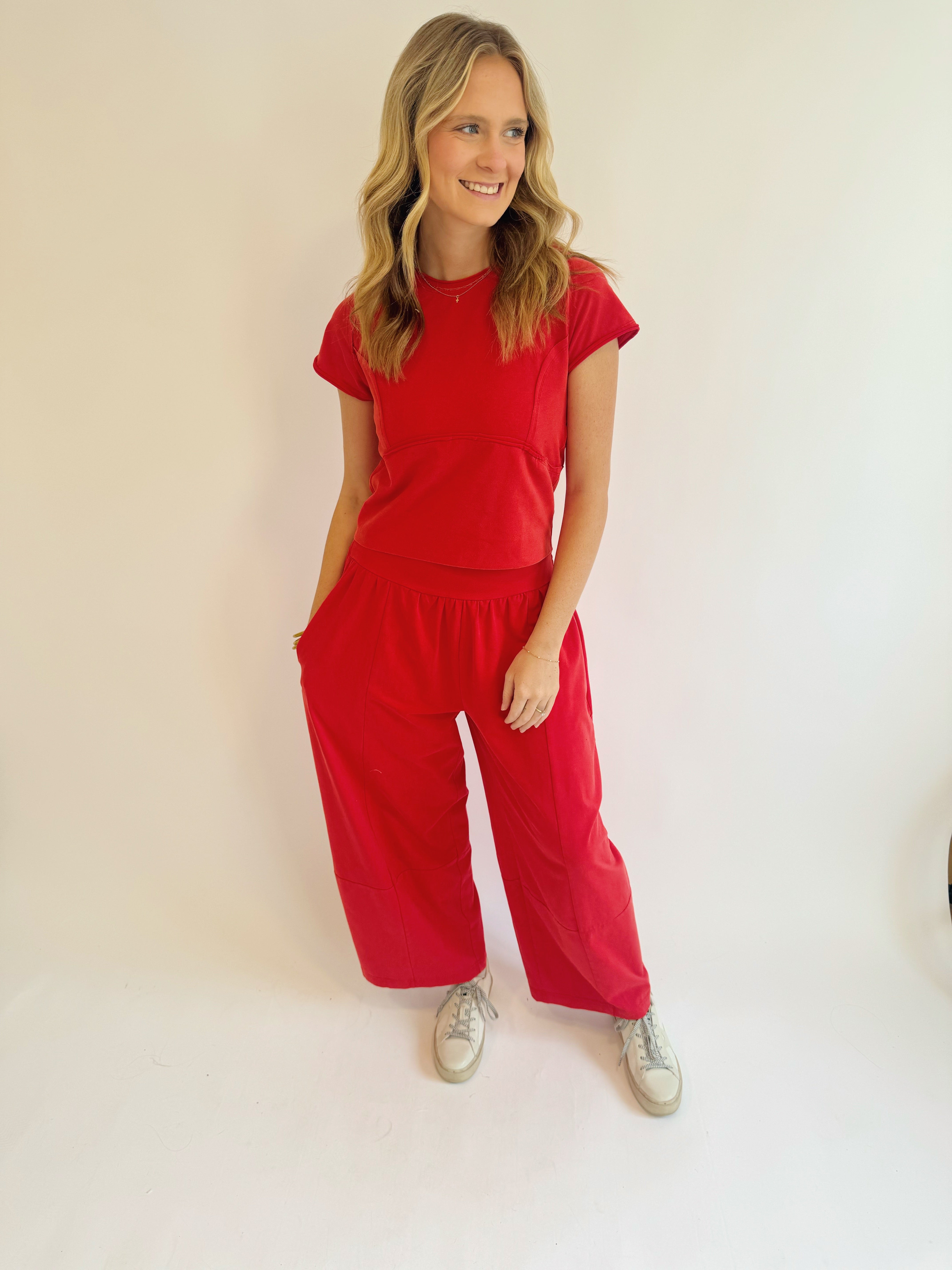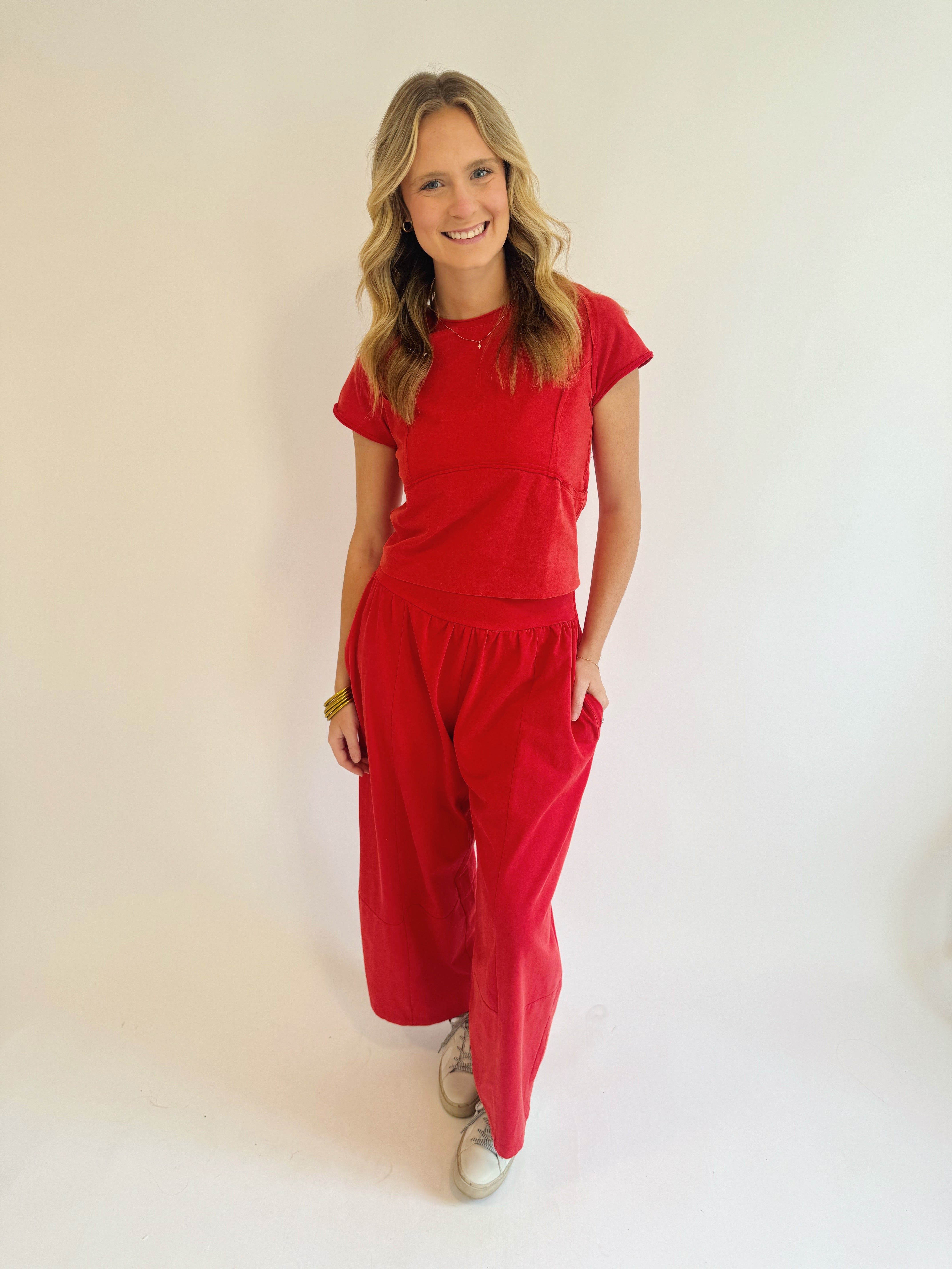 Red Mineral Washed Wide Leg Pants with Mineral Washed Cropped T-Shirt to match