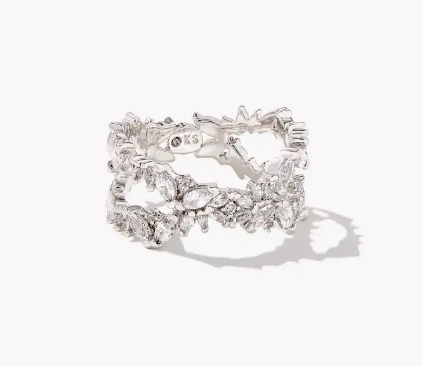 Kendra Scott Rosalie Silver Double Band Ring in White CZ size 6