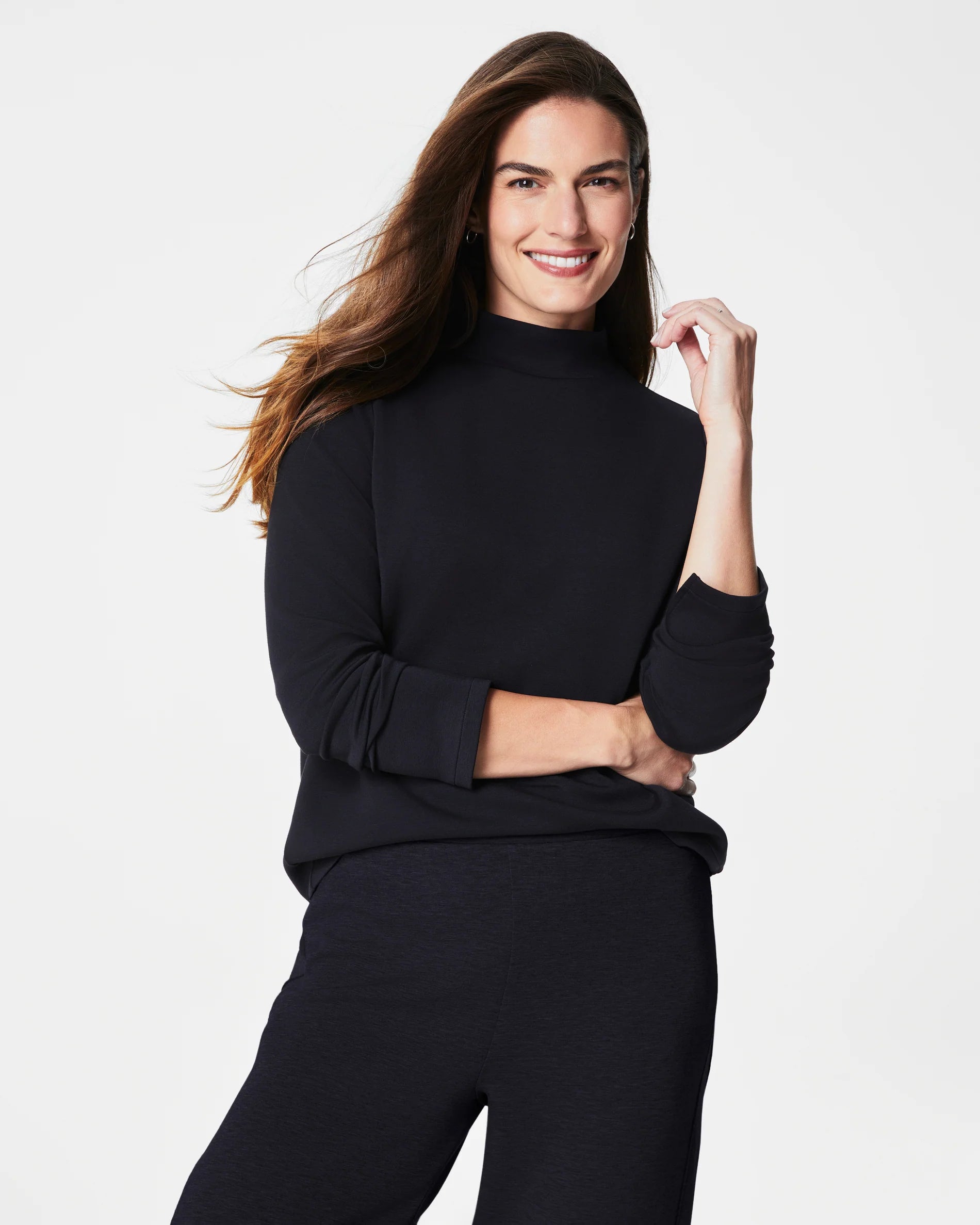 Say hello to a smooth silhouette with the Spanx Mock Pullover. This quirky top will keep you looking stylish and feeling confident all day long. Its seamless design and slimming features make it a must-have in any wardrobe.