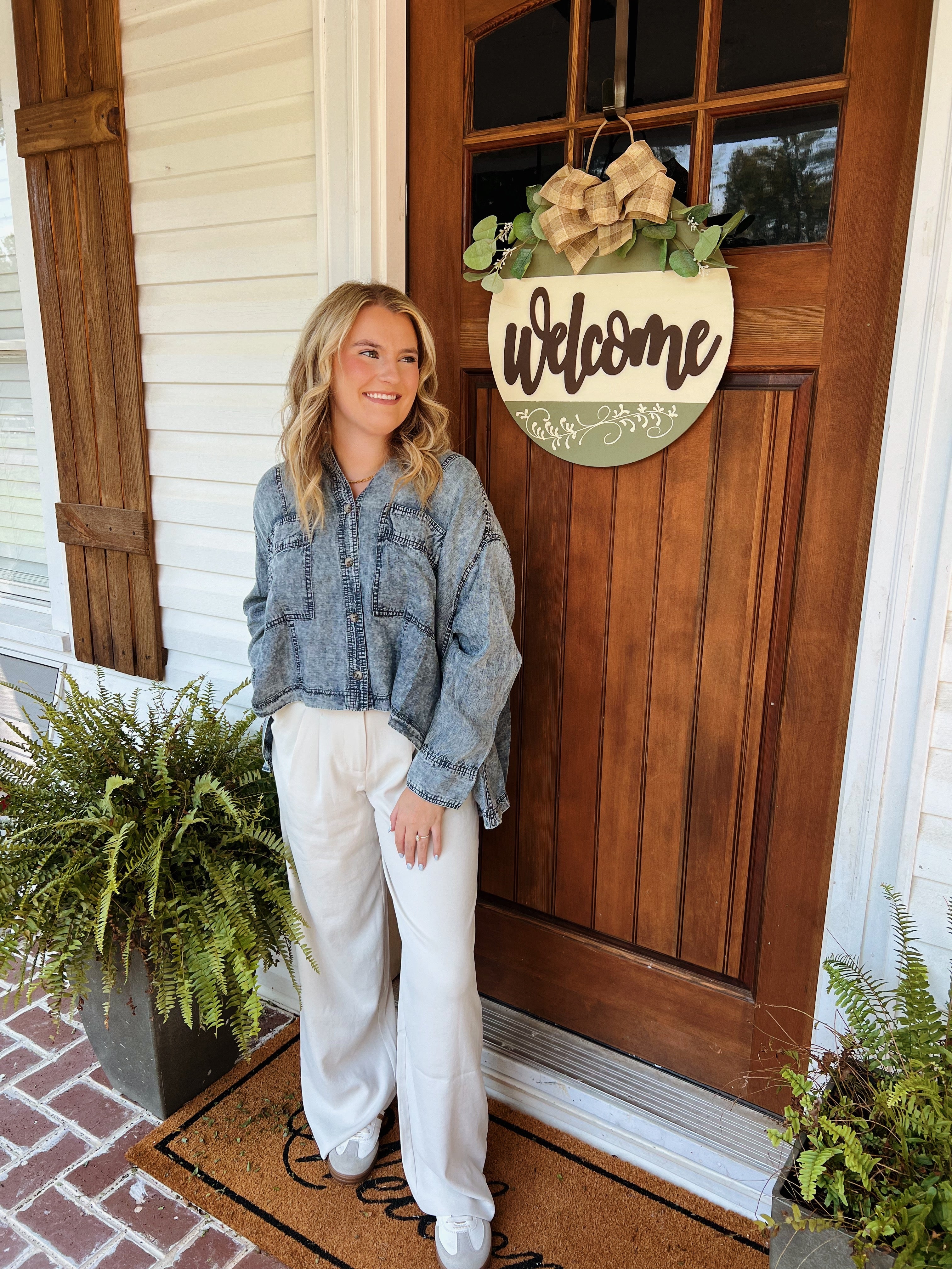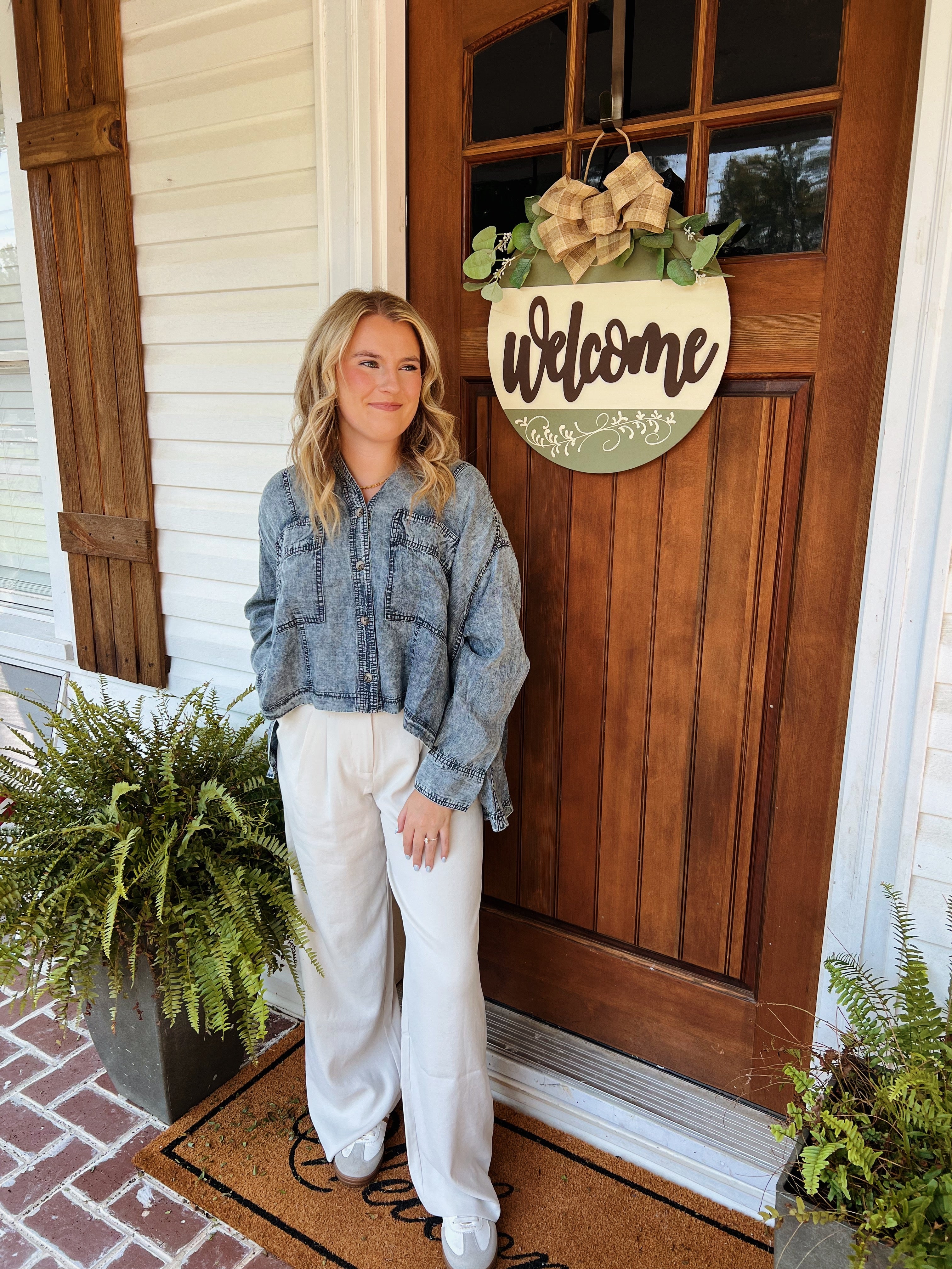Stay cool and stylish this summer with our Summer Denim Blouse by ee:some. Made with denim fabric, this blouse is perfect for warm weather and pairs well with any outfit. Crafted with high-quality materials, this blouse guarantees a comfortable fit and a fashion forward look.