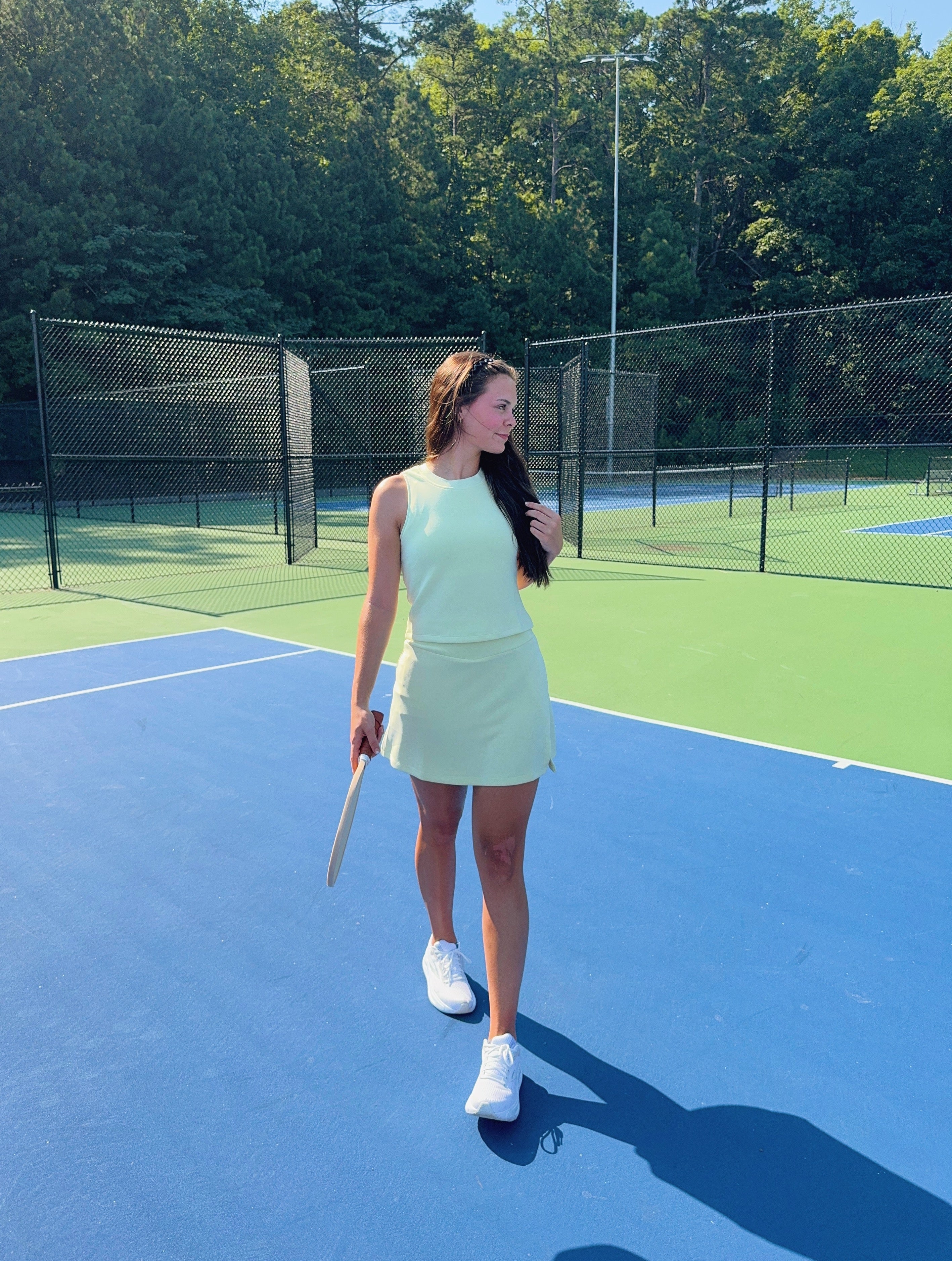This butter-soft pastel yellow Sweat & Sass Set is your new favorite for easy, breezy style. The skirt’s flirty side slit and built-in shorts let you move freely, while the matching tank top adds a fun, laid-back vibe. Perfect for playful days when comfort meets cool.