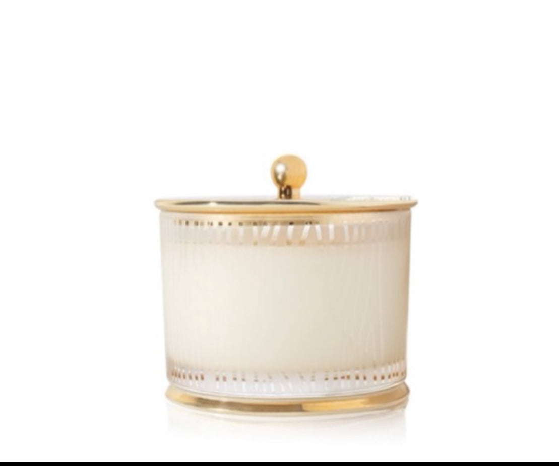 wood grain glass with gold lid