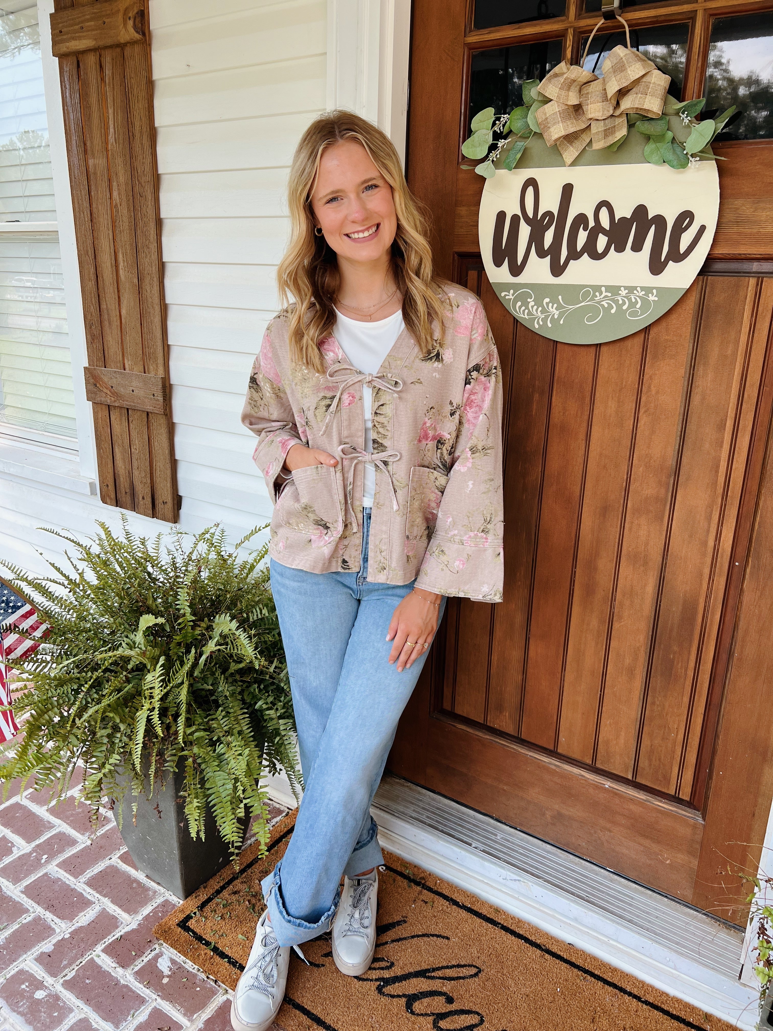 Step back in time with the Vintage Rosie Top, featuring a charming retro floral pattern in warm browns and soft pinks. Its front ties adds a touch of nostalgic flair, perfect for playful days and vintage-inspired adventures. Embrace timeless style with a fun, feminine twist.