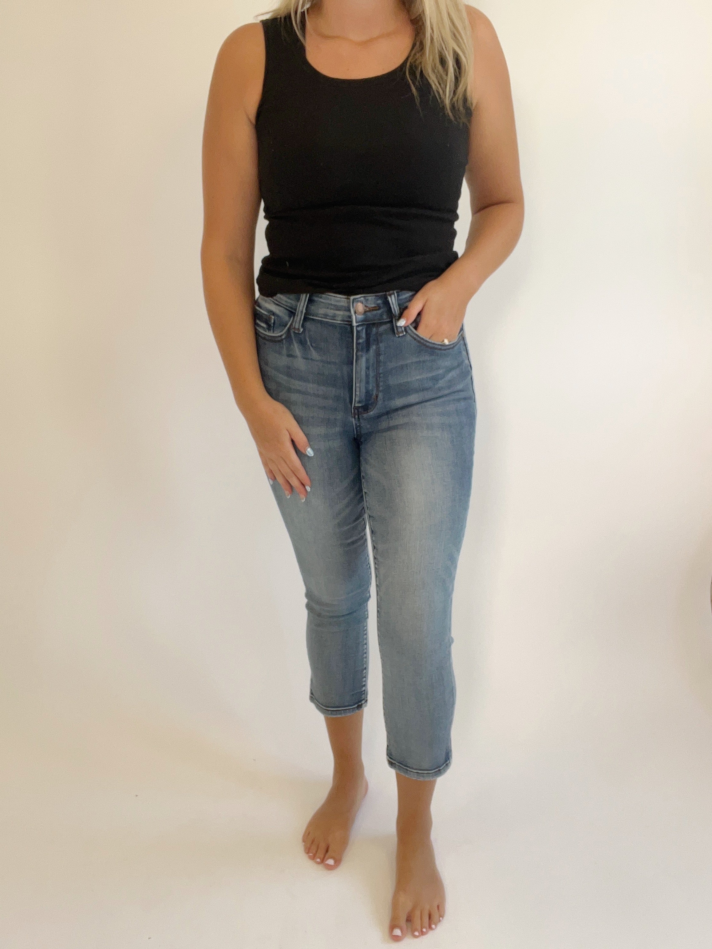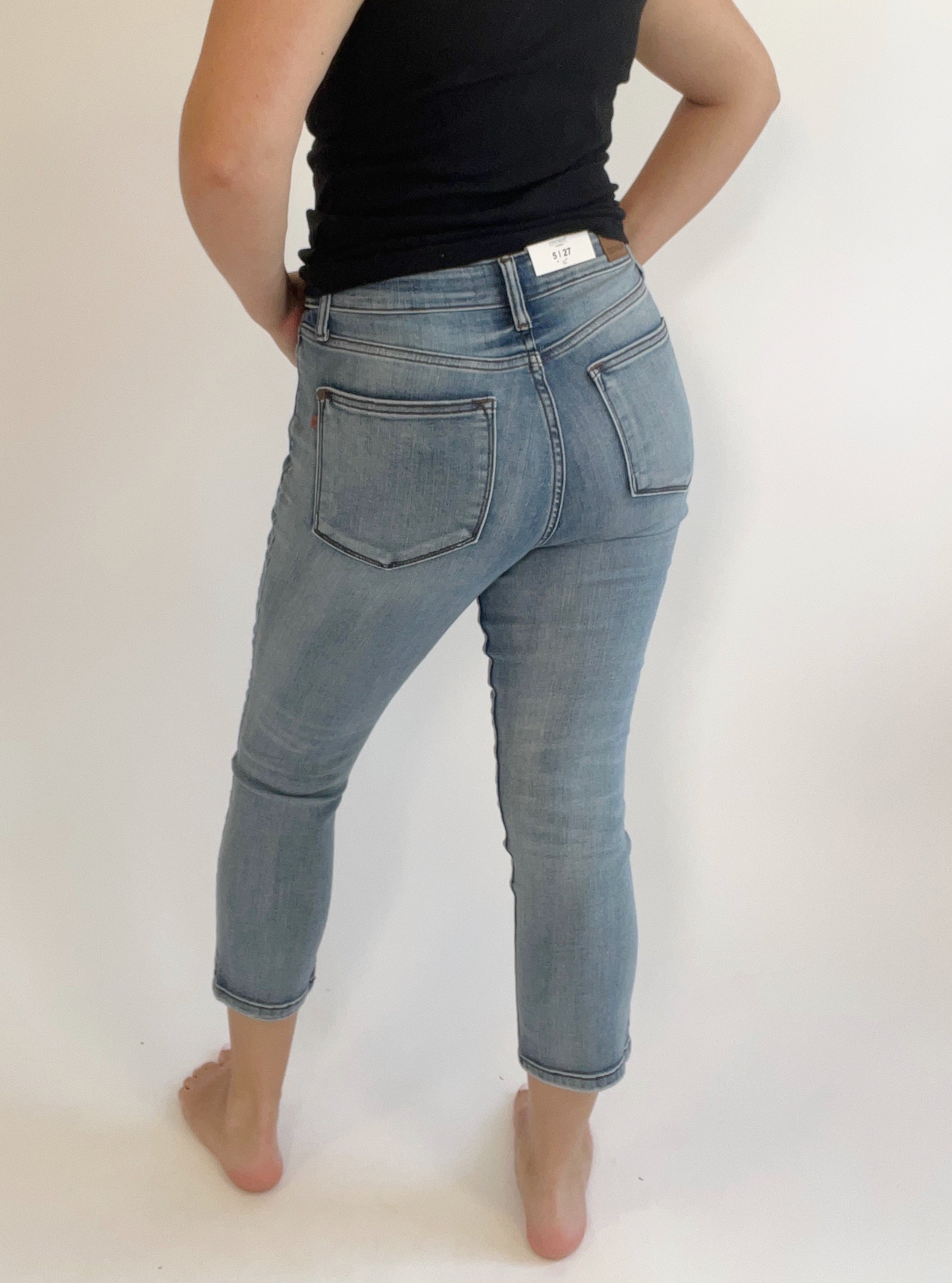 Rock those curves in our Washed Denim Judy Blues! These mid-rise skinny fit capri jeans will hug your body in all the right places, giving you a sleek and stylish look. Perfect for any casual occasion, these jeans will have you feeling confident and comfortable all day long. Upgrade your denim game with these must-have jeans.