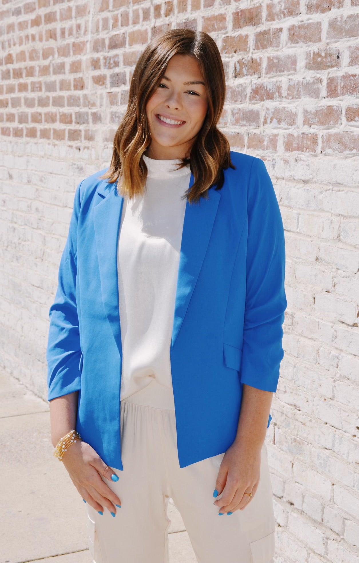 Introducing the Work Blues Blazer - the ultimate cure for your Monday blues! With this statement blazer in vibrant blue, you'll chase away your work worries in style. Say goodbye to boring workwear and hello to a fun and fashionable solution!